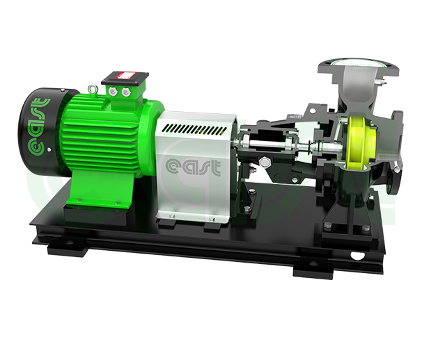 XA系列泵为单级单吸离心泵。该泵主要由泵体、泵盖、叶轮、轴、轴套和悬架等部分组成。泵轴伸出端由两个滚动轴承支承,轴承用机器油或润滑脂润滑。填料函用软填料或机械密封。泵通过弹性联轴器由电动机直接驱动。